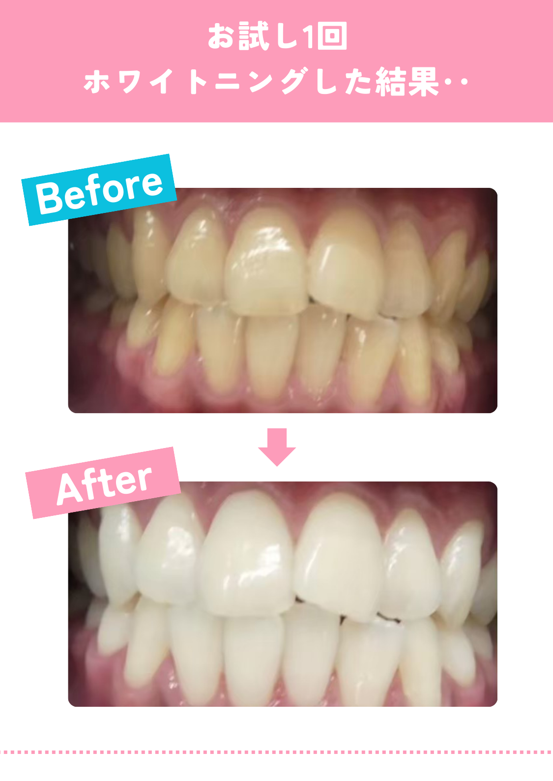 もちろんお試しは継続される意思がある方に受けてもらうものですが、ホワイトニングがどんなものなのか試して見ないとわからないと思います。